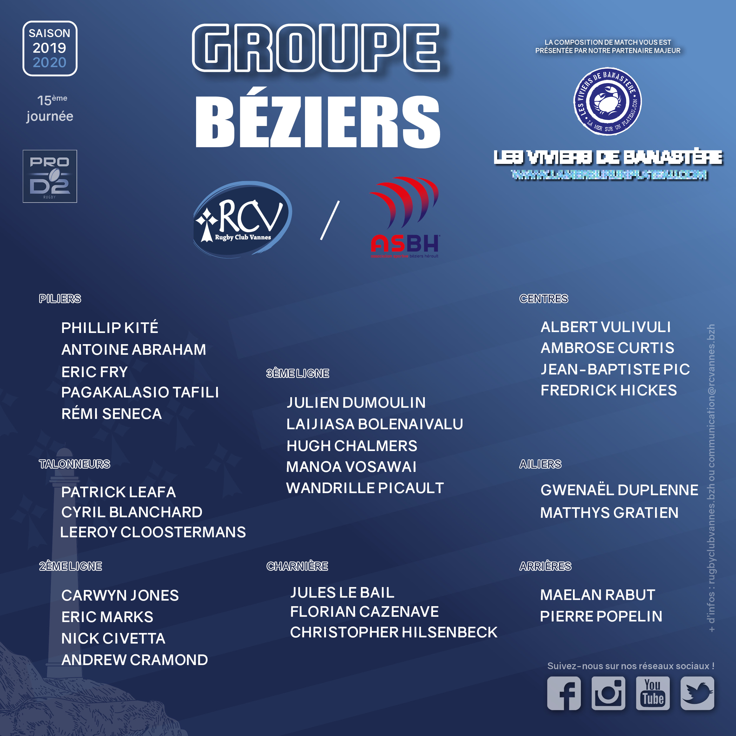 Hugo pas dans le groupe, pas seulement un problème de blessure donc, le staff ne lui fait pas confiance pour l'instant. Pilet et Bonnefond sortent du groupe aussi. Dubreuil ne revient pas, pas plus que Abiven. Fartass perdu dans la pampa. Picquette en protocole.